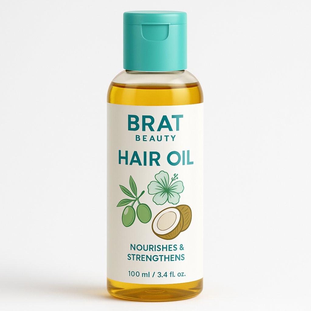 Brat Beauty Hair Oil—the natural blend your hair needs for strength, shine, and smoothness.